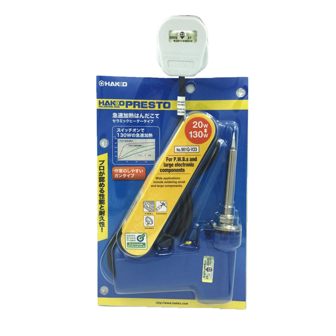 1 X HAKKO PRESTO 981G-V23 Soldering Iron (20W ~ 130W) and Free 3 Pin Plug Top.