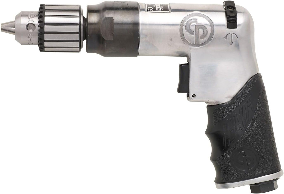 The Chicago Pneumatic CP789HR Air Drill (Industrial Pistol Grip, 3/8") is a super-duty reversible air drill designed for heavy-duty industrial applications. It offers high torque, durability, and ergonomic control, making it suitable for drilling, reaming, hole sawing, and other demanding tasks