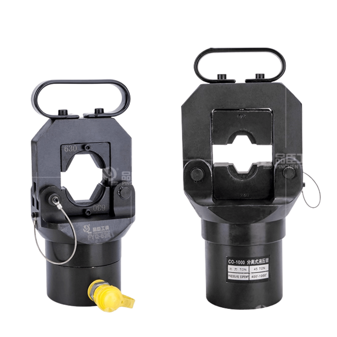 These are split-type hydraulic crimping heads, they are portable and connect to external hydraulic pumps. Their role is to crimp cable lugs onto large power cables, ensuring safe, conductive, and durable electrical connections.