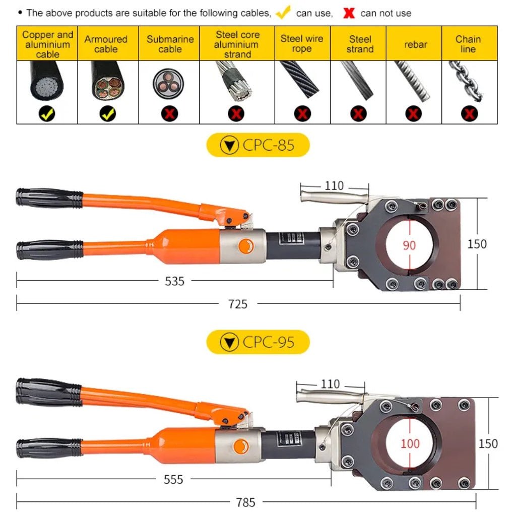 Range of shear: Copper Aluminum Armored Cable ø75mm