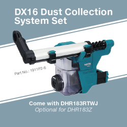 This model features two operation modes—rotary hammer and rotary drilling—making it ideal for everyday professional applications. The RTWJ kit includes two 5.0Ah batteries, a fast charger and a Makpac case, while the DHR183Z version is provided as a bare tool.