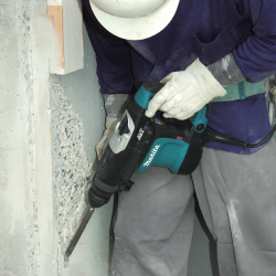 The Makita HR3210C 32mm Rotary Hammer is a professional corded tool designed for heavy-duty drilling, hammering, and chiseling in concrete, masonry, and stone. Equipped with a powerful motor and SDS-Max chuck system, it provides high impact energy and efficient drilling performance. Its ergonomic design, vibration control, and side handle ensure comfort and stability during prolonged use, making it ideal for construction, renovation, and industrial applications.