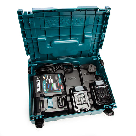 Makita MKP1G002 is a power source kit in the 40Vmax range from Makita has all your power solutions stored in a handy MakPac case. It contains the DC40RA and 2 x BL4040 40V 4.0Ah batteries.