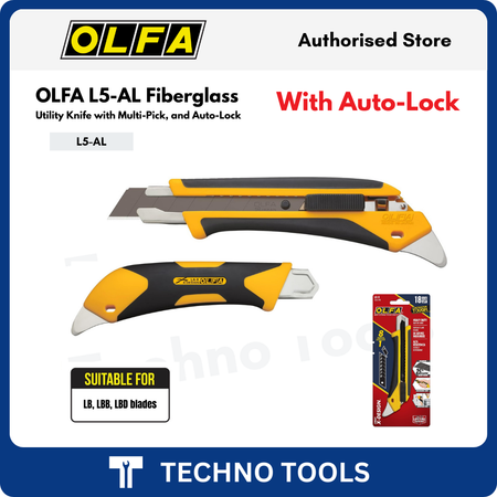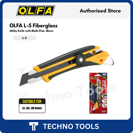 OLFA L-5 & L5-AL 18mm L-5 Fiberglass Utility Knife with Multi-Pick / Comfortable Anti-Slip Maximum Performance Cutter
