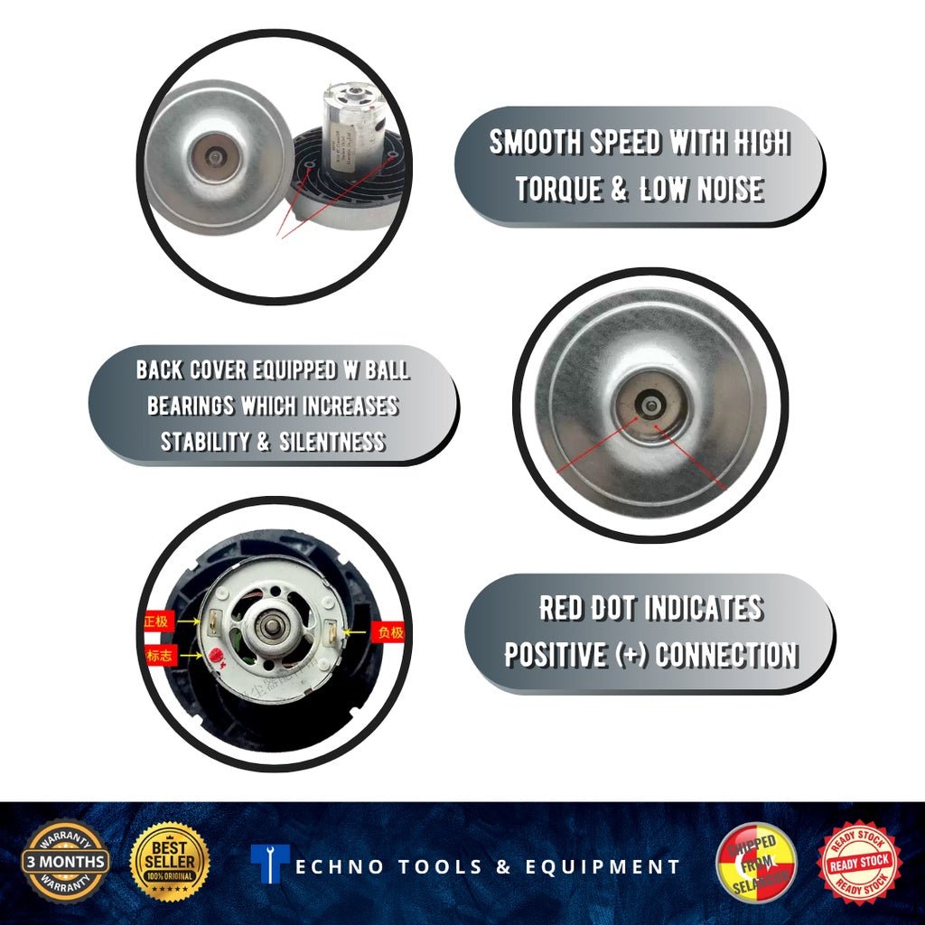 PMDC RS 545 Motor for Vacuum Cleaner Roll Brush: