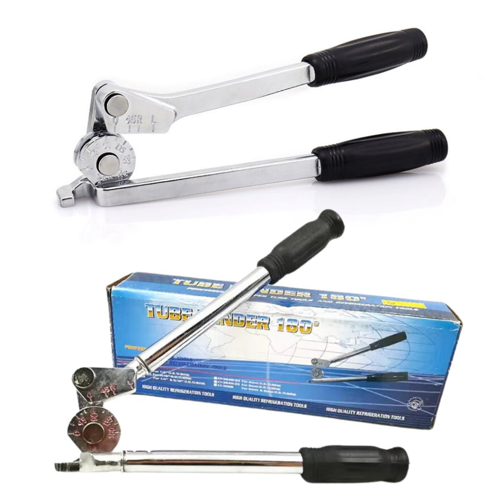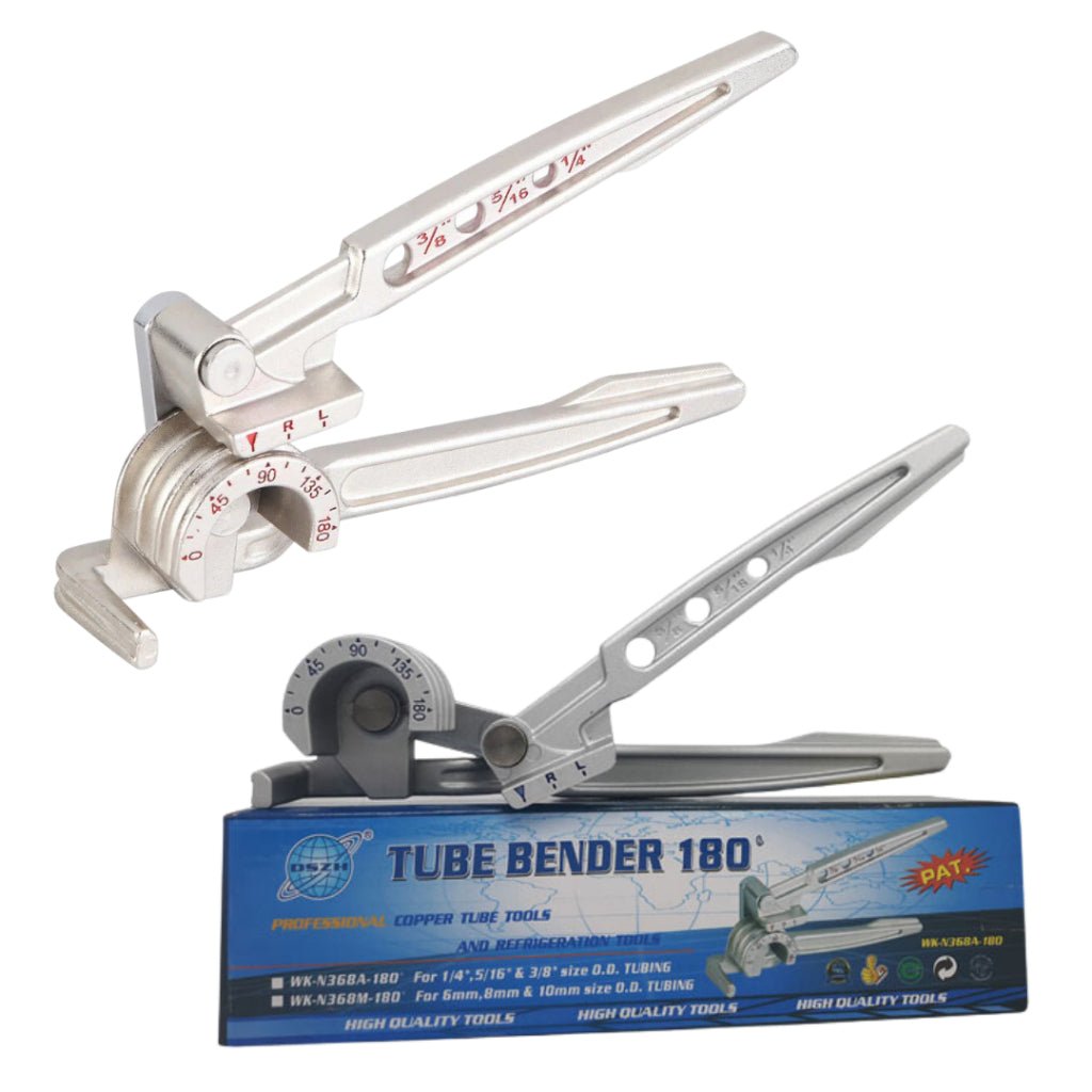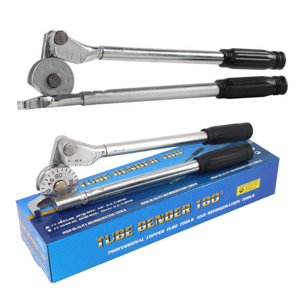 • Offset cushion grip handles eliminate knuckle cracking when forming 180° bends. A 90° start angle and unique oil-