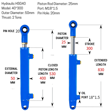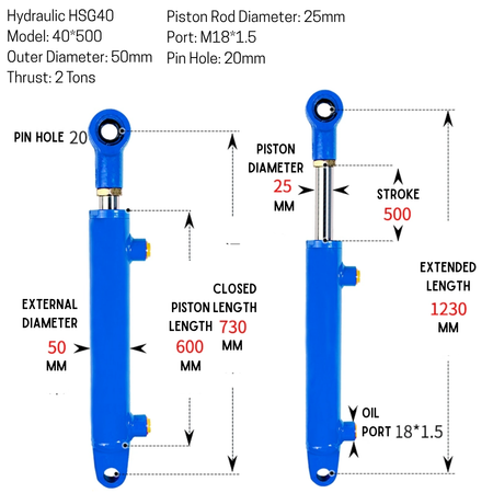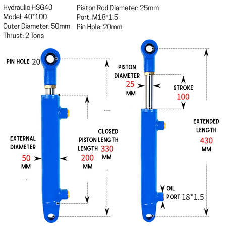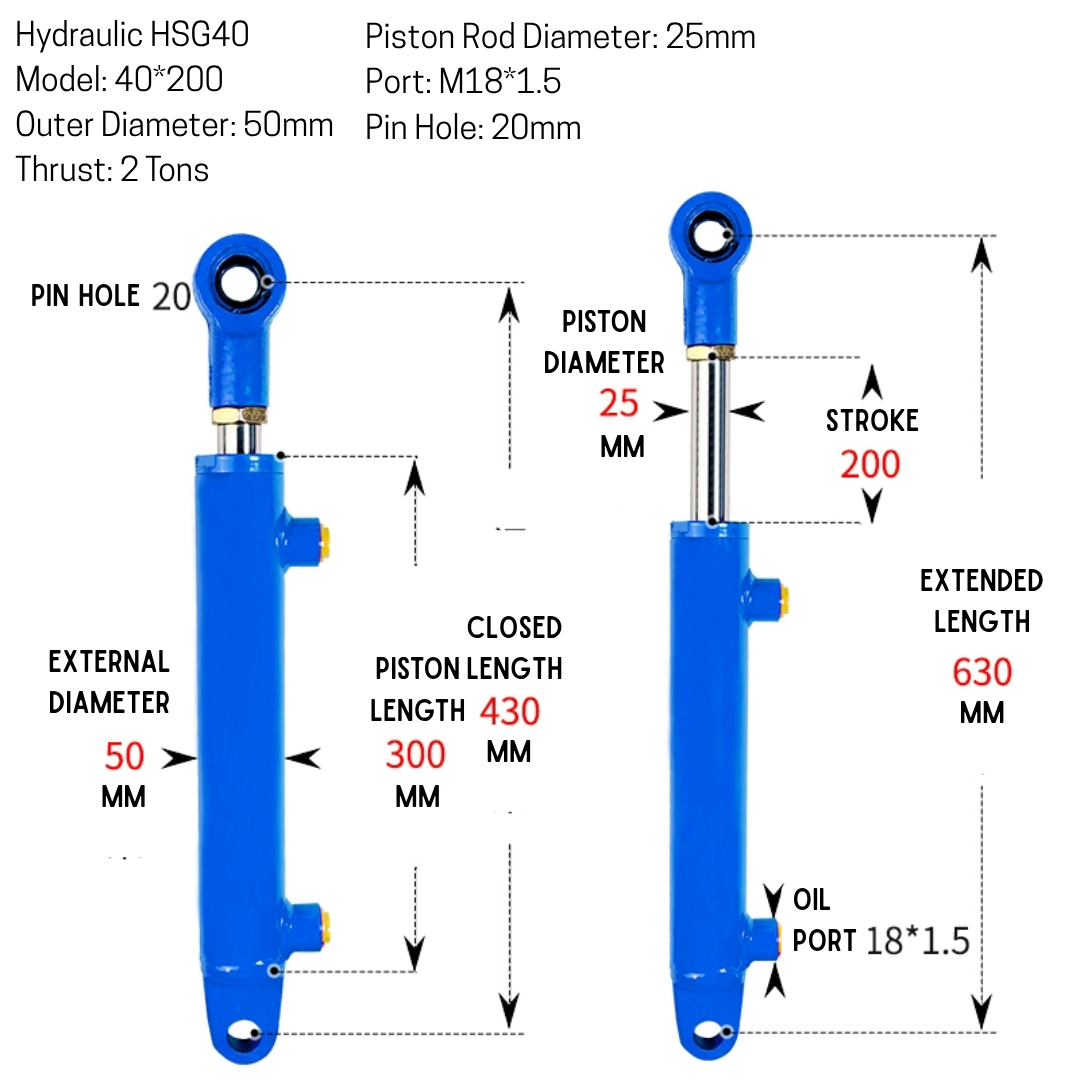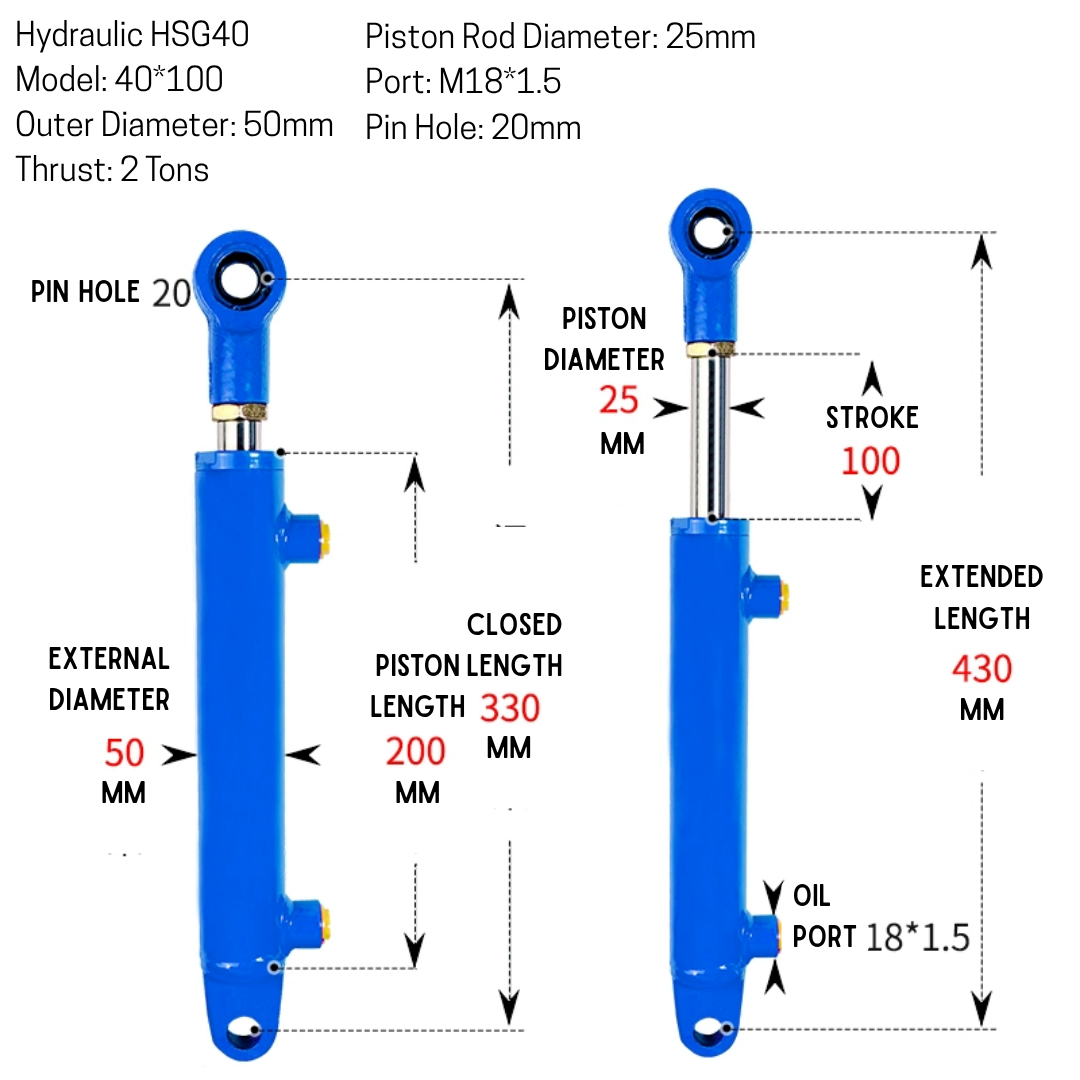 100-500mm Travels Hydraulic Oil Cylinder Heavy Duty Bidirectional Lifting Small Wood Splitter 2 Tonnage HSG - 1PC