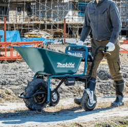 The Makita DCU180Z 18V Battery Powered Wheelbarrow is designed to assist with heavy-duty material transport in construction sites, landscaping projects, farms, and industrial environments. Powered by the Makita 18V LXT battery platform, it offers excellent mobility, reduced operator fatigue, and efficient handling of heavy loads. Its robust frame, variable speed control, and large load bed provide enhanced performance and stability, making it an essential tool for professionals who require reliable transport assistance.